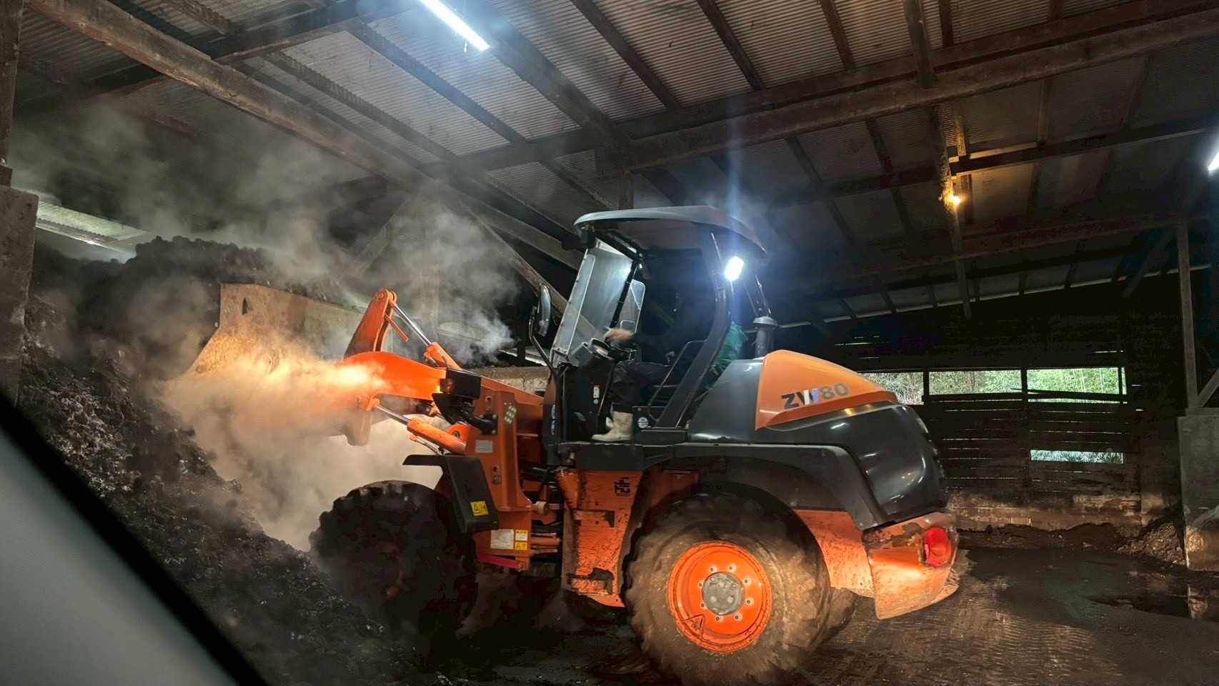 堆肥の中心温度はなんと85℃!混ぜると湯気が立っていました。