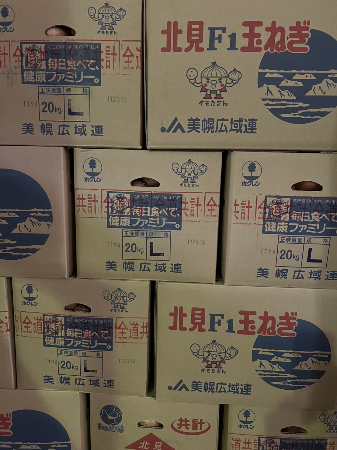 北海道産の玉ねぎが山積み