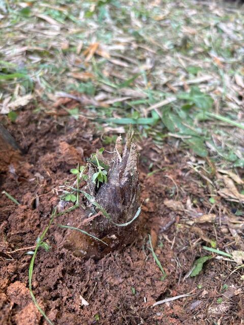 やがて見つけたのは、土からひょっこりと顔を出したたけのこ。ほんの少し頭を出しているだけなので、見つけるのもなかなか大変ですが、その分見つけたときの嬉しさは格別です。